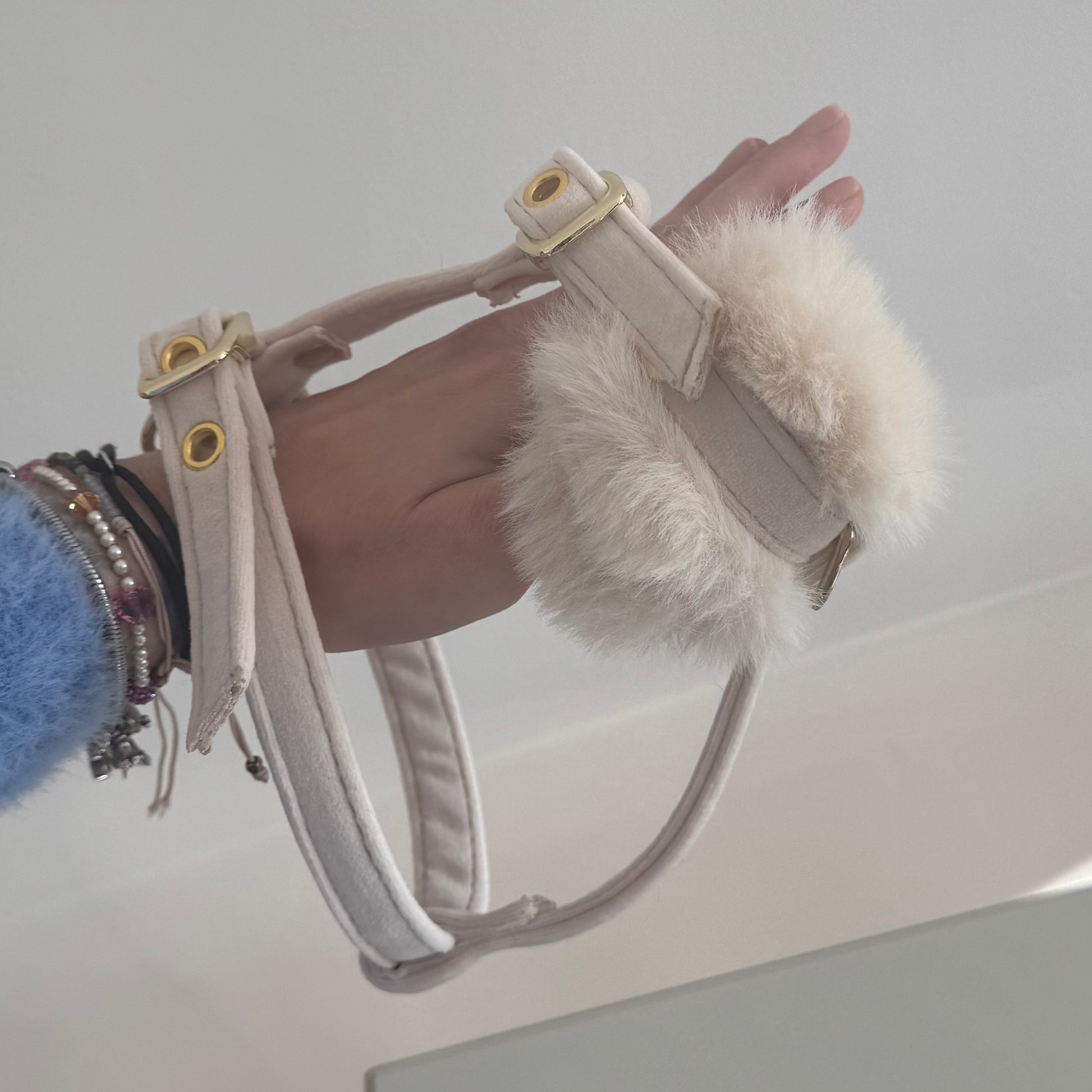 Le harnais est livré avec un petit col en fourrure détachable (grâce à des pressions). Cela en fait une pièce élégante, originale et raffinée, à utiliser été comme hiver.